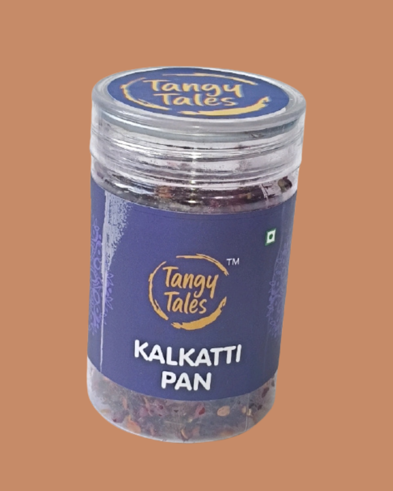 Tangy Tales Kalkatti Pan (100g) is a traditional Indian mouth freshener inspired by the rich flavours of Kolkata-style paan. Made with betel leaves, fennel, cardamom, rose petals, and natural sweeteners, it brings you the authentic taste of meetha paan in a convenient ready-to-eat form.