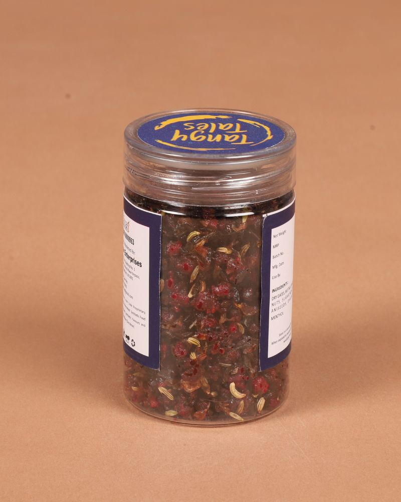 Tangy Tales Rimjhim Gulkand Mix is a sweet, refreshing blend of gulkand and traditional mouth freshener ingredients, offering a cooling taste with every bite.