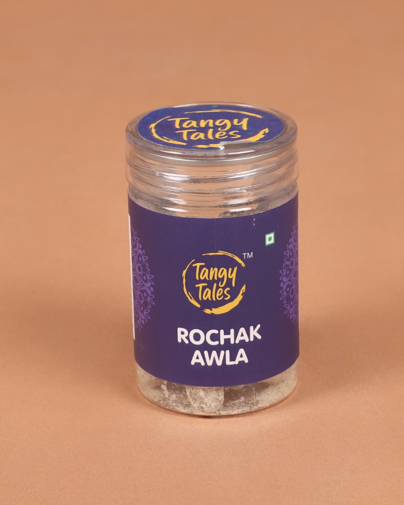 Relish the traditional taste of Indian wellness with Tangy Tales Rochak Awla (100gm). Made from dried Indian gooseberries (amla), coated with tangy-spicy seasoning, this treat is both healthy and delicious.